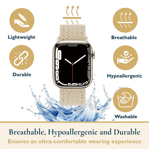 Unique Braided Loop - Created by weaving 16,000 polyester yarn filaments around ultrathin silicone threads using advanced, precision-braiding machinery, then laser cutting the band to an exact length for a custom fit. This process creates a soft and breathable texture, adding depth and a touch of sophistication.