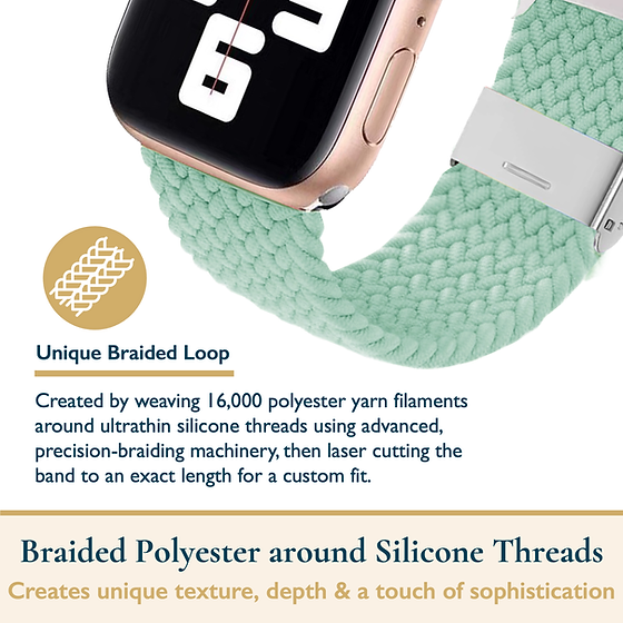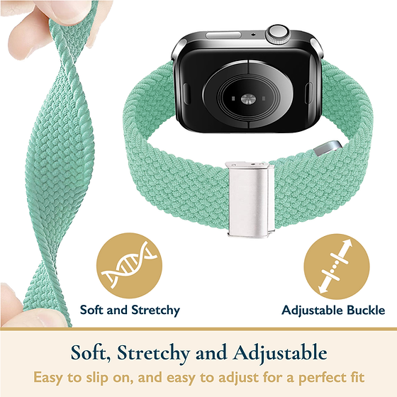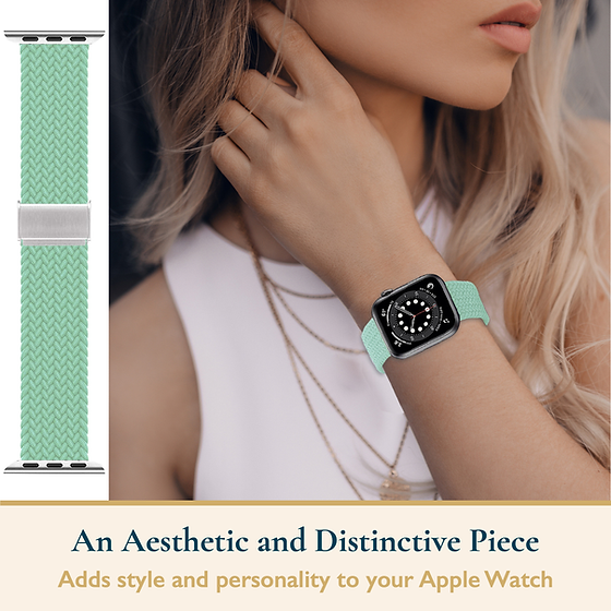 The Apple Watch Bands For Women Braided Vegan Threads Cyan Band is chic and stylish. The mixed colors braided bands represent diversity and are weaved with a bright and fun appearance. Crafted from quality nylon threads, these watch straps are comfortable and easy to use thanks to the adjustable length straps. A playful design that speaks to the wearer's youth. Also available in limited solid colors